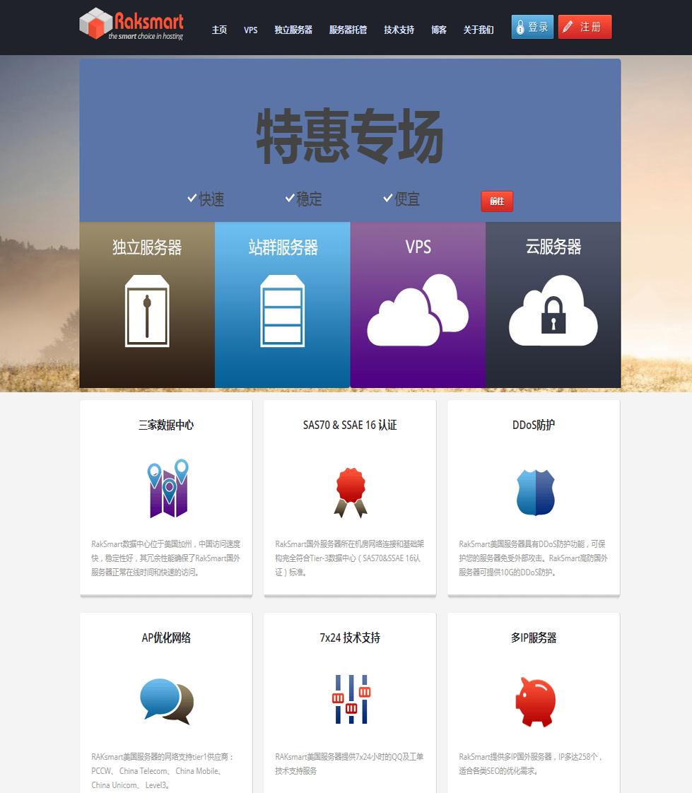RAKsmart多年的服务器管理、机房管理、售后咨询业非常成熟,在业内知名度广。目前主要提供VPS和服务器产品租用服务。